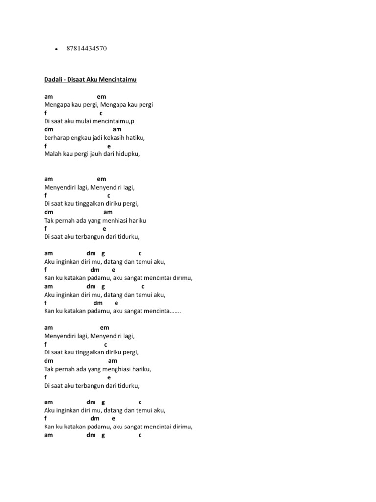 Berikut cuplikan syair nyanyian teks dari lagunya. Walau kumasih mencintaimu Dm ku harus meninggalkanmu C ku harus melupakanmu. Ingin ku bahagiakan dirimu Setiap saat bersamaku Seperti janjiku kepadamu Tak kan pernah ku ingkari.